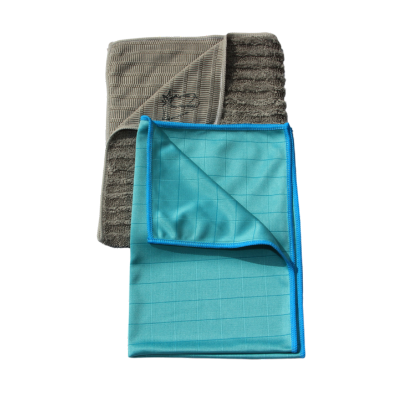 Ideaal voor in de badkamer. De egeldoek gebruik ik voornamelijk voor de douchecabine. Droog ik alles in een keer zonder strepen achter te laten. De aangeslagen spiegel droog ik met de polijstdoek. Fijne combi set.
